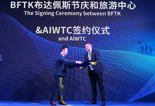 5月17日上午,由重慶市商務(wù)委員會、重慶市文化和旅游發(fā)展委員會以及匈牙利駐重慶總領(lǐng)事館主辦,由AIWTC人工智能·全球旅行鏈(www.aiwtc.com)承辦的匈牙利旅游智能化升級交流促進會暨BFTK&AIWTC合作簽約儀式在重慶國際博覽中心盛大舉行。匈牙利國會副主席雅高布·伊什特萬、重慶市人大常委會副主任夏祖相以及中匈雙方政府、企業(yè)領(lǐng)導、各大旅行社以及各大主流媒體等參與,共同推動旅游智能化升級,見證AIWTC與匈牙利的合作邁上新的臺階。